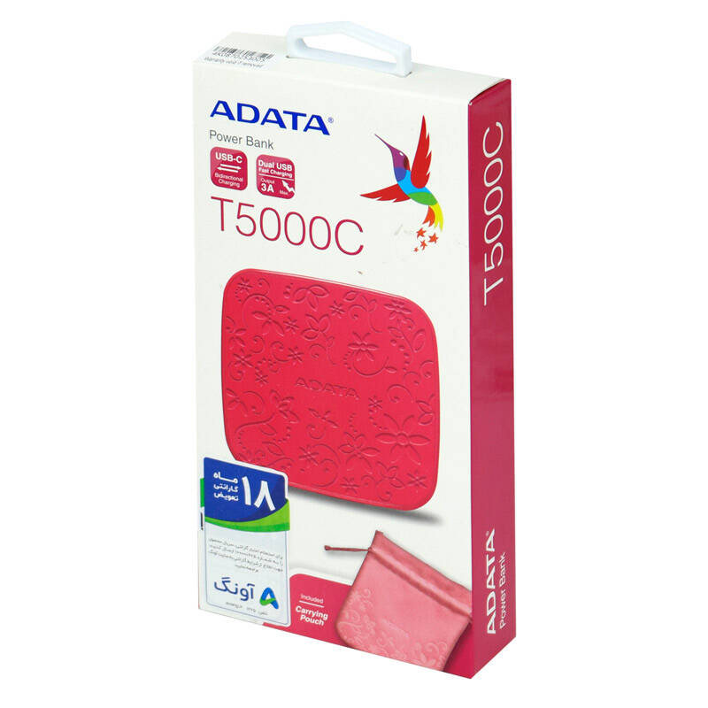 پاور بانک فست شارژ ای دیتا مدل T5000 C ظرفیت ۵۰۰۰ میلی آمپر ساعت